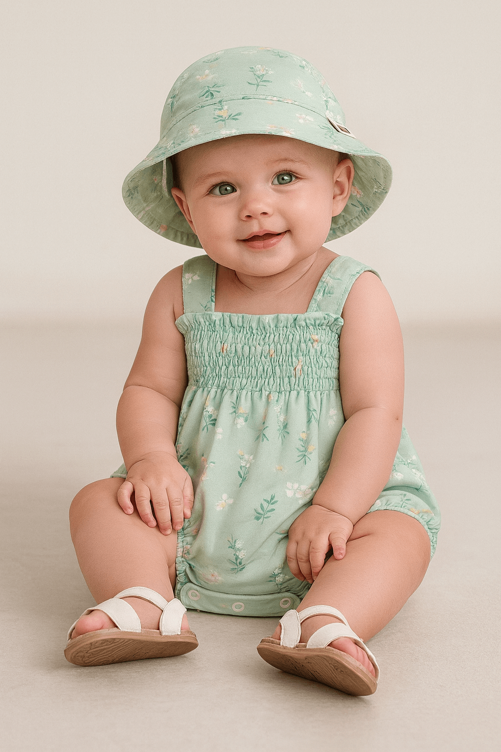 O Banho de Sol de Bebê Menina da Nini Bambini é feito em malha 100% algodão, proporcionando conforto essenciais para os dias quentes, curto com abertura no meio das pernas, facilita a troca de fraldas, estampa delicada de florzinhas, enquanto o chapéu que acompanha oferece proteção extra contra o sol. Peça já!