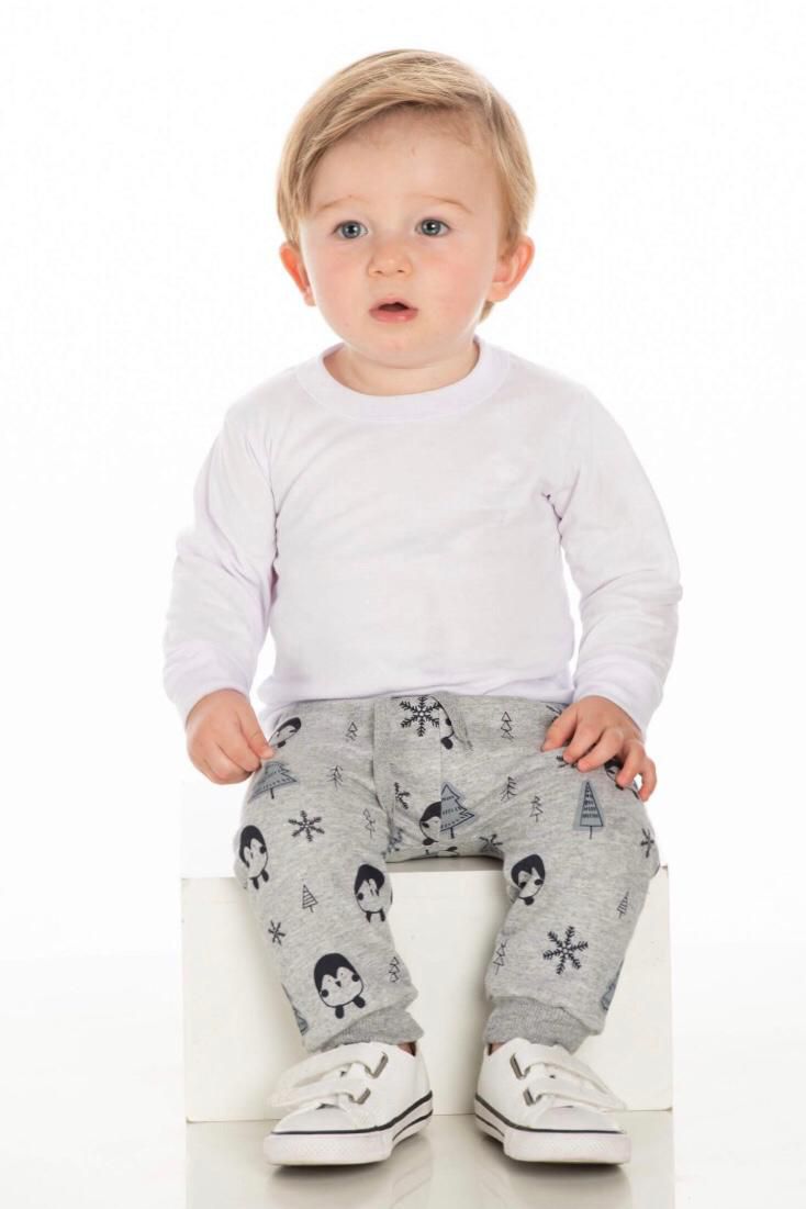 Calça de bebê moletom Duzizo, duas cores, estampa de neve, punho na barra e cintura, da Duzizo. É uma excelente opção para usar no inverno, porque ela é bem quentinha. Aproveite!!
