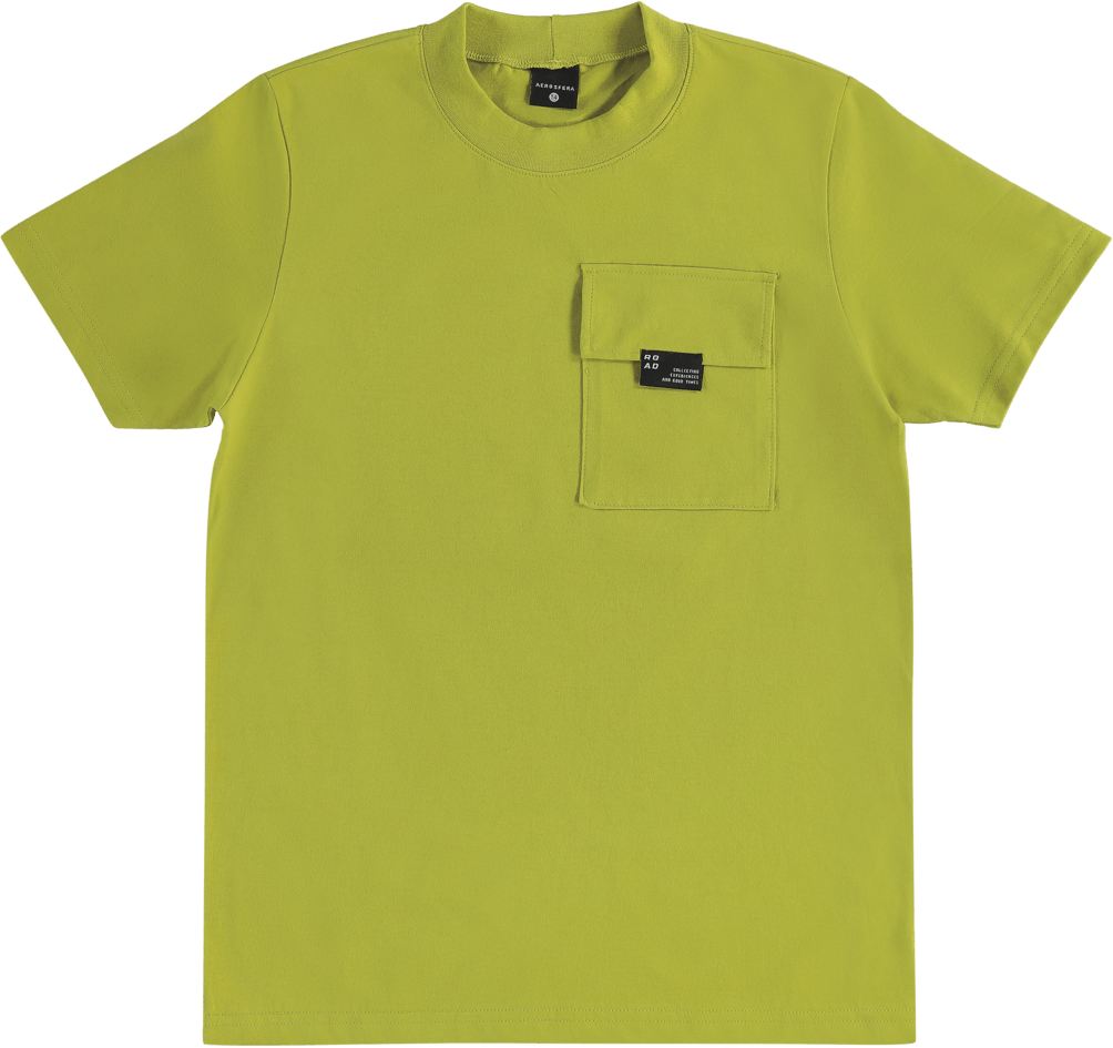 Camiseta juvenil masculina da Dila, verde jaca, malha de algodão, gola redonda, manga curta, bolso na frente. Perfeita, moderna, confortável, peça a sua!