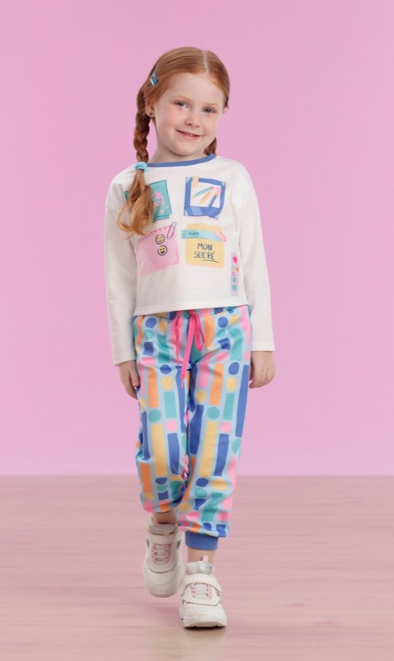 Conjunto infantil feminino da Mon Sucré, blusa manga longa, confeccionada em malha e com estampa floral. Calça jogger, confeccionada em malha colorida, possui cós com elástico flexível, cordão para amarrar. Compre já!