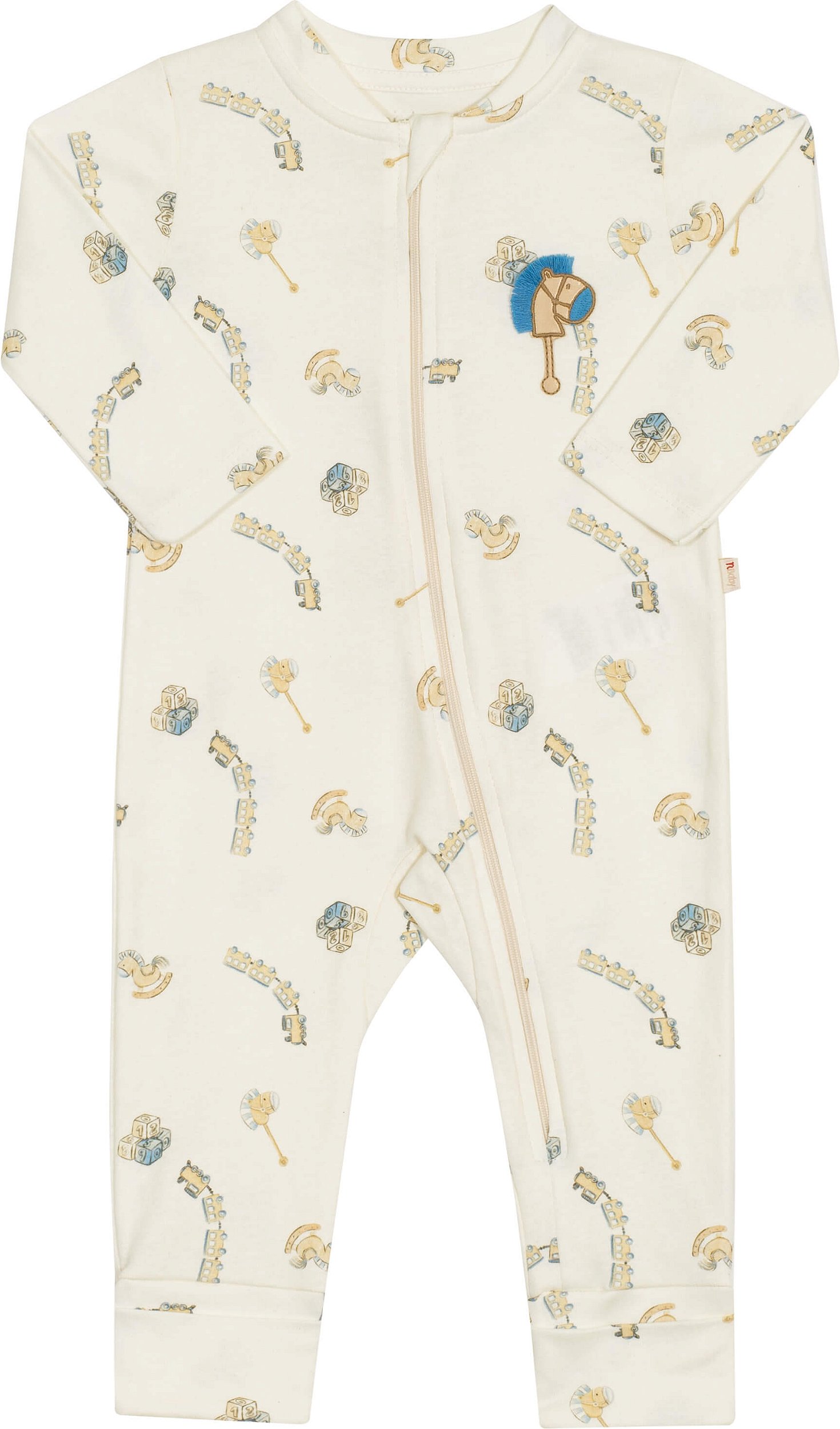 Macacão de Bebê da Nini e Bambini, malha de algodão, cru estampa cavalinhos, feixe com zíper na frente, vira pé. Conforto, maciez e praticidade nessa peça, compre já!