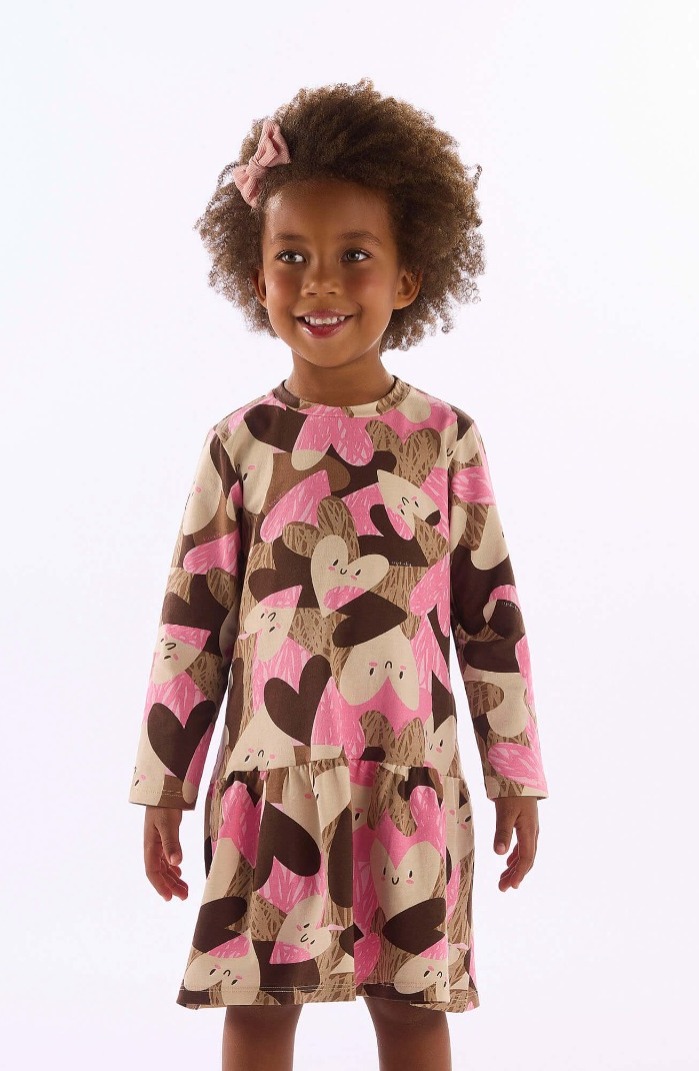 O vestido é confeccionado em tecido cotton com estampa divertida com combinação de cores. Seu corte pensado para conforto garante liberdade de movimentos para a criança brincar e aproveitar o dia. Perfeito para passeios ou momentos de lazer.